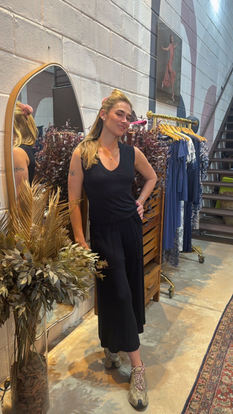 A Pantacourt Tricot proporciona um detalhe visual interessante e estruturado que acrescenta um toque de requinte ao design. O tecido confere volume controlado à perna da calça, criando uma silhueta fluida e elegante, ao mesmo tempo em que garantem conforto e liberdade de movimento.