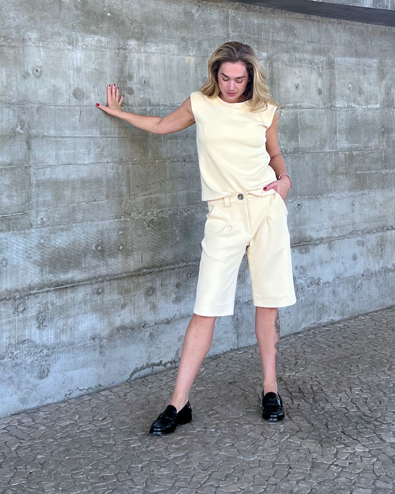 REGATA PETRUSKA: Regata estruturada estilo "Muscle Tee". Sua estrutura sutil realça os ombros sem enchimento, proporcionando um visual mais definido. Com modelagem sequinha, essa regata é uma escolha versátil para completar seu guarda-roupa com um toque moderno e elegante.