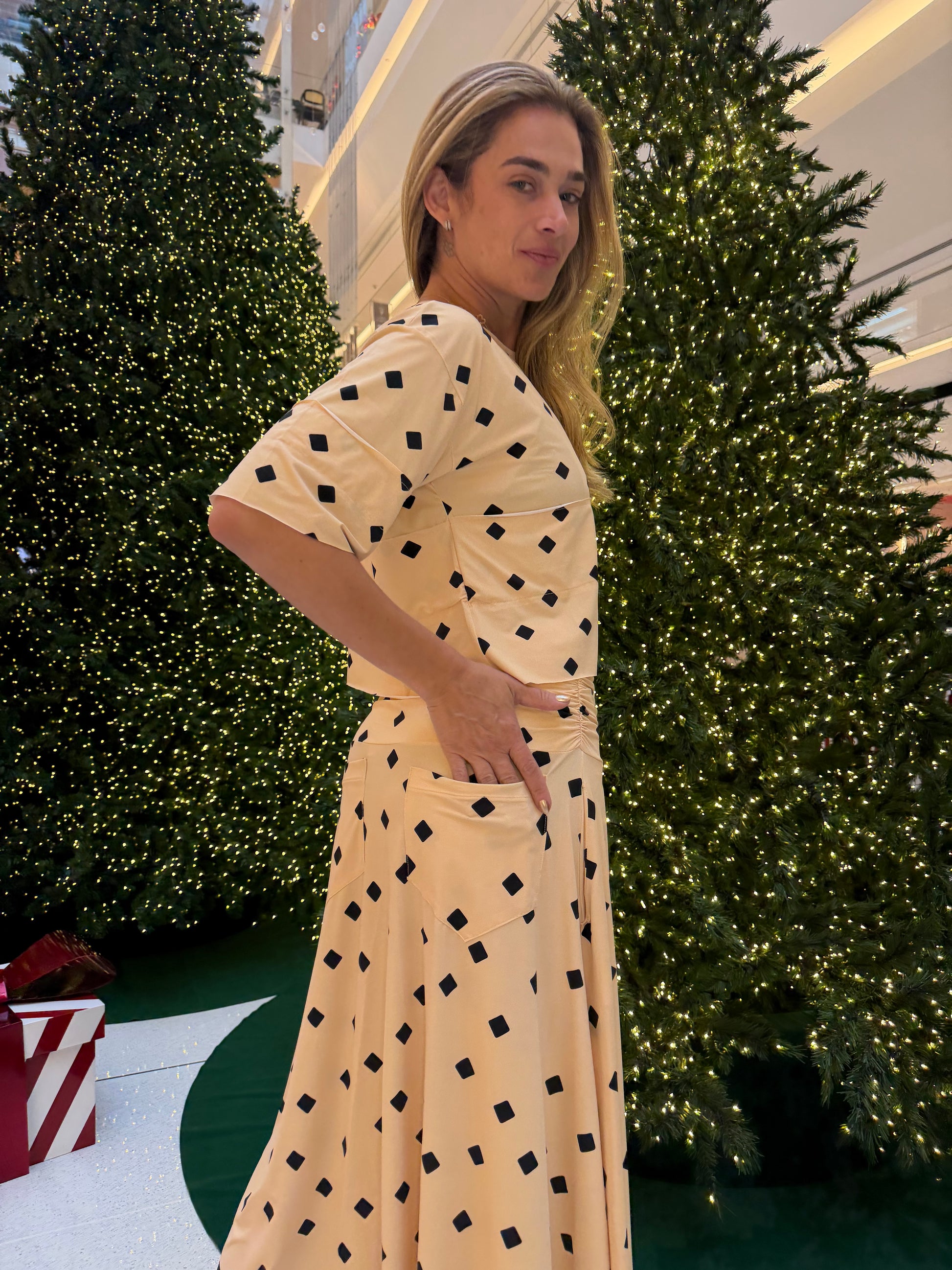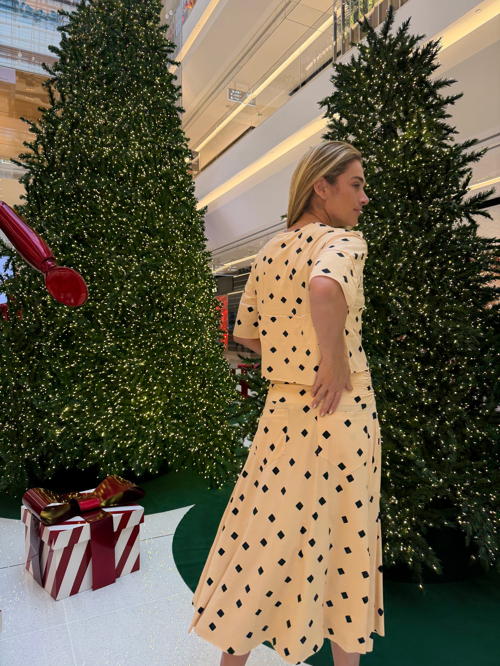 Apresentamos nossa saia mais versátil! Com um design prático e funcional, esta saia oferece bolsos laterais e quadrados no bumbum para adicionar um toque moderno. Seja para um passeio descontraído ou um compromisso mais formal, esta saia é perfeita para criar looks versáteis e confortáveis.