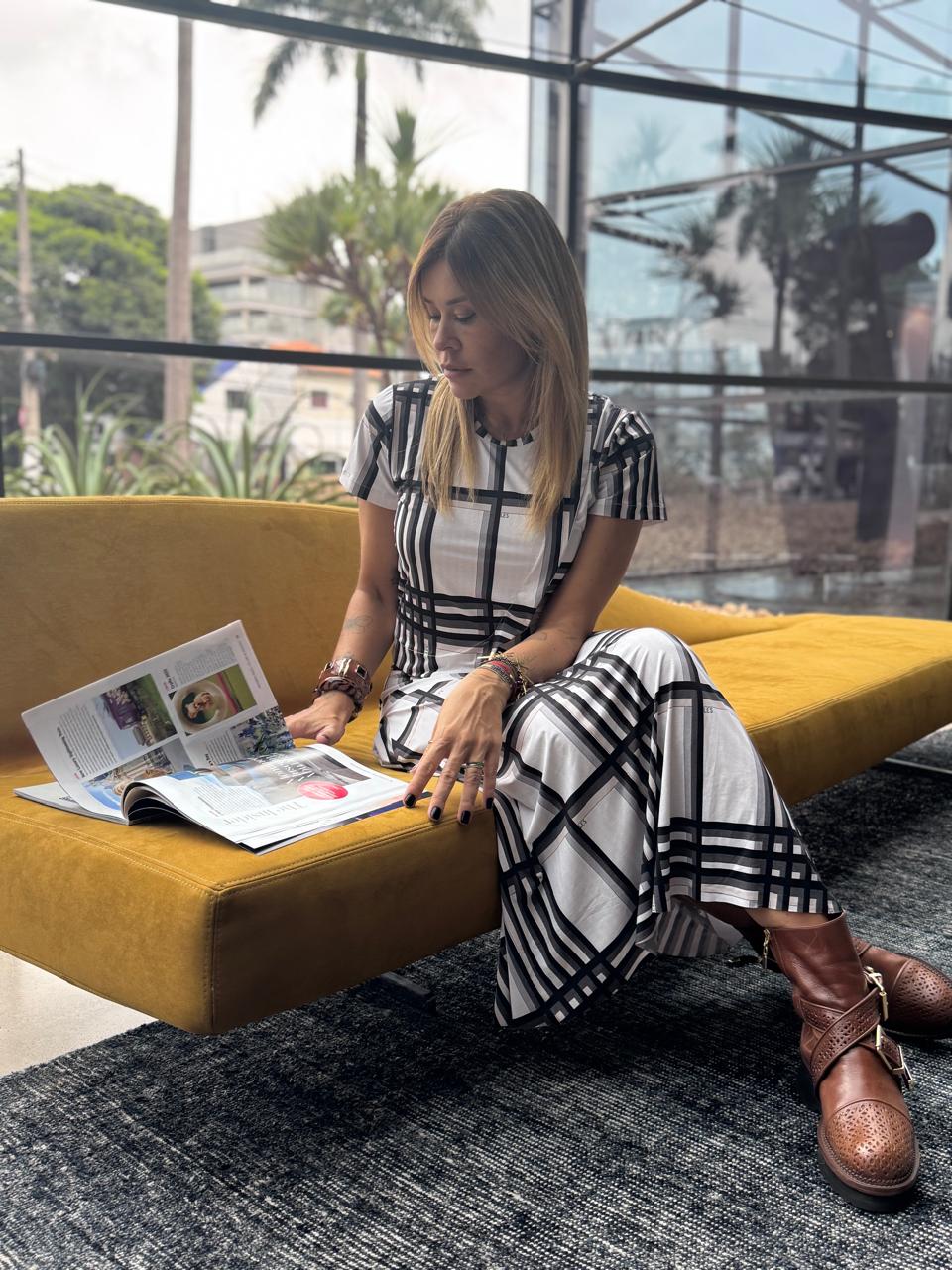 Apresentamos nossa saia mais versátil! Com um design prático e funcional, esta saia oferece bolsos laterais e quadrados no bumbum para adicionar um toque moderno. Seja para um passeio descontraído ou um compromisso mais formal, esta saia é perfeita para criar looks versáteis e confortáveis.